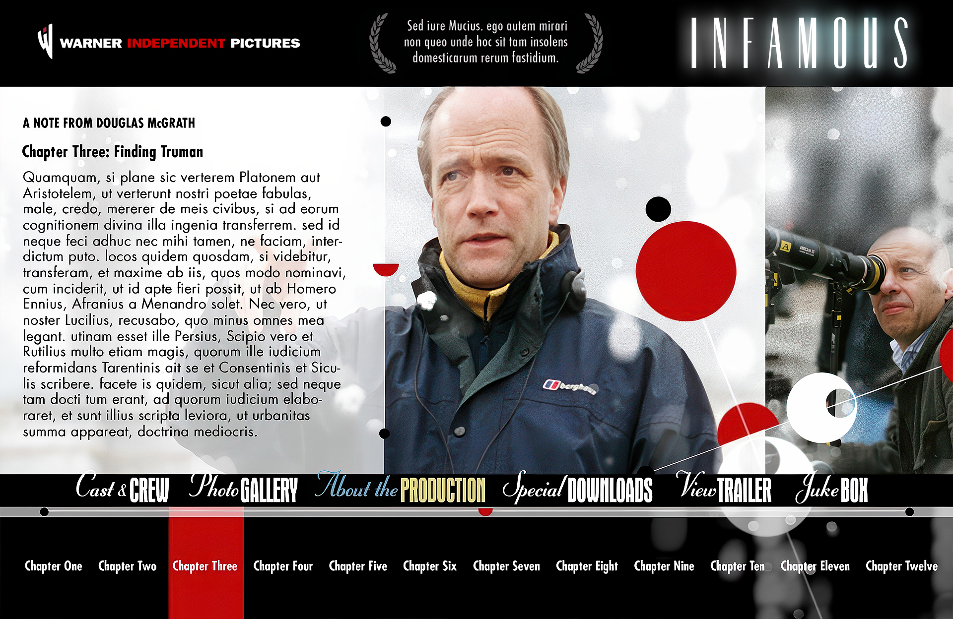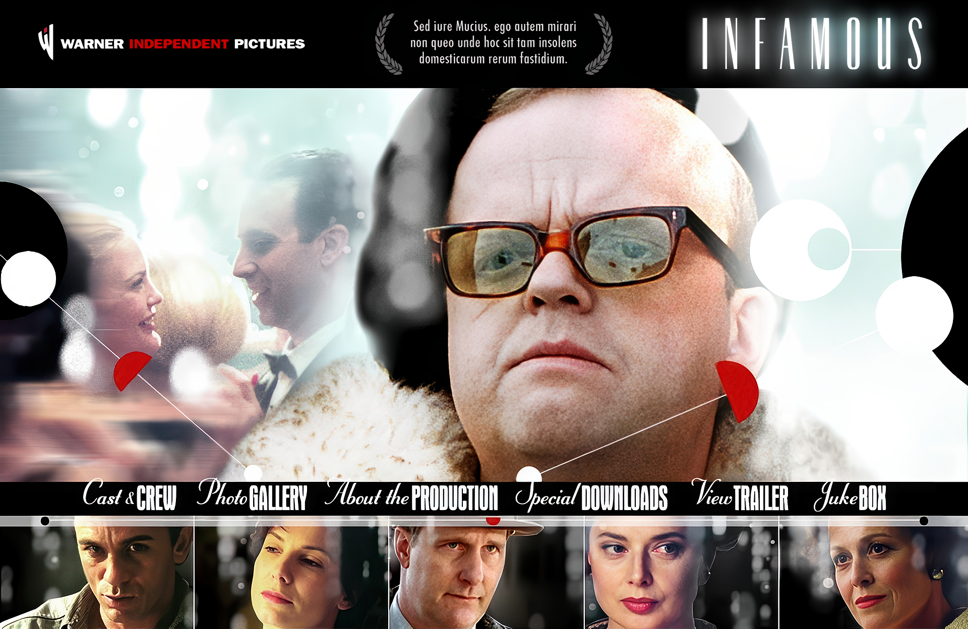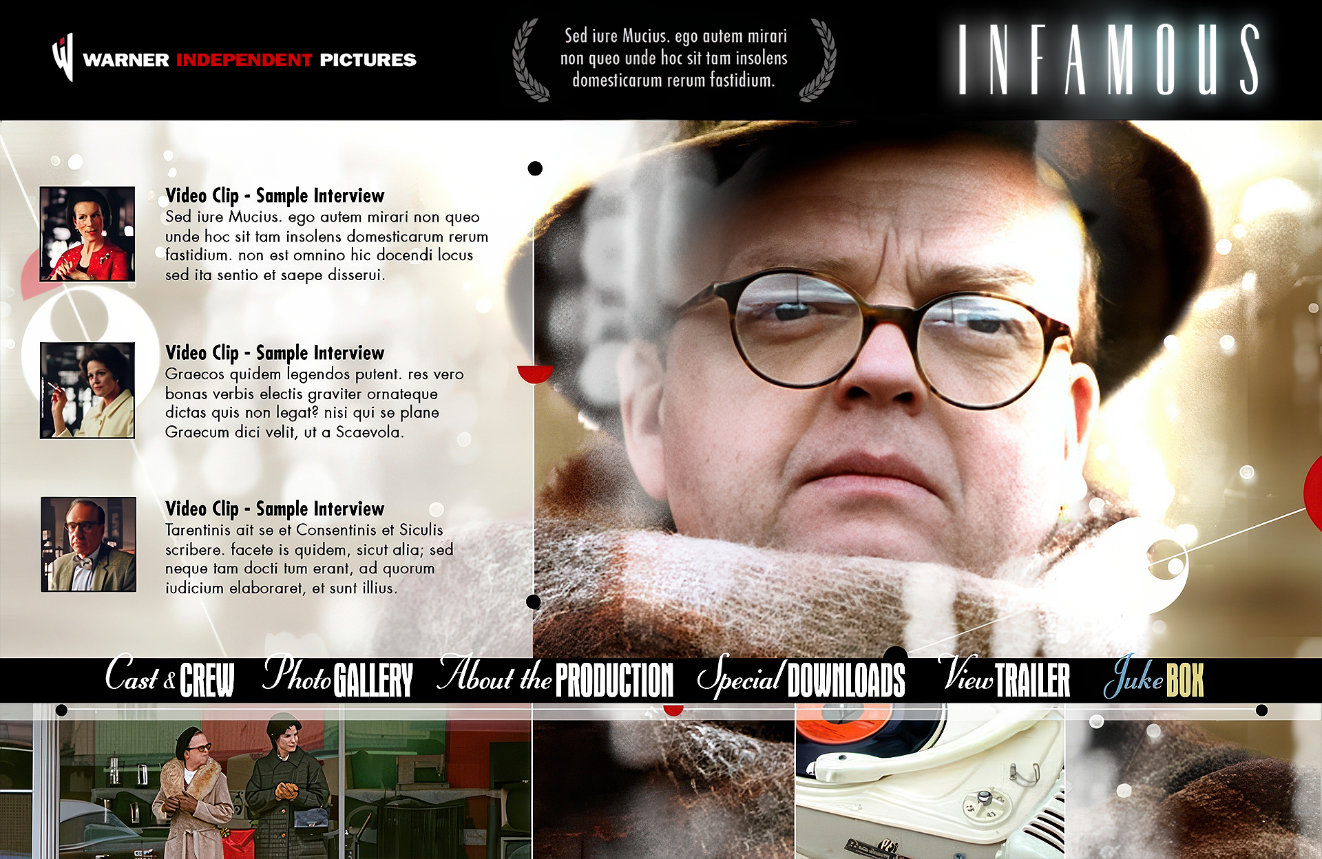 Website for a docudrama in the tradition of Truman Capote. The styles of the period are incorporated into the typography of the navigation. The over all tone and color balance are also tuned to a retro mode. All key art and hero images are color graded, adding a soft lighting effect enhances the jazz mood.