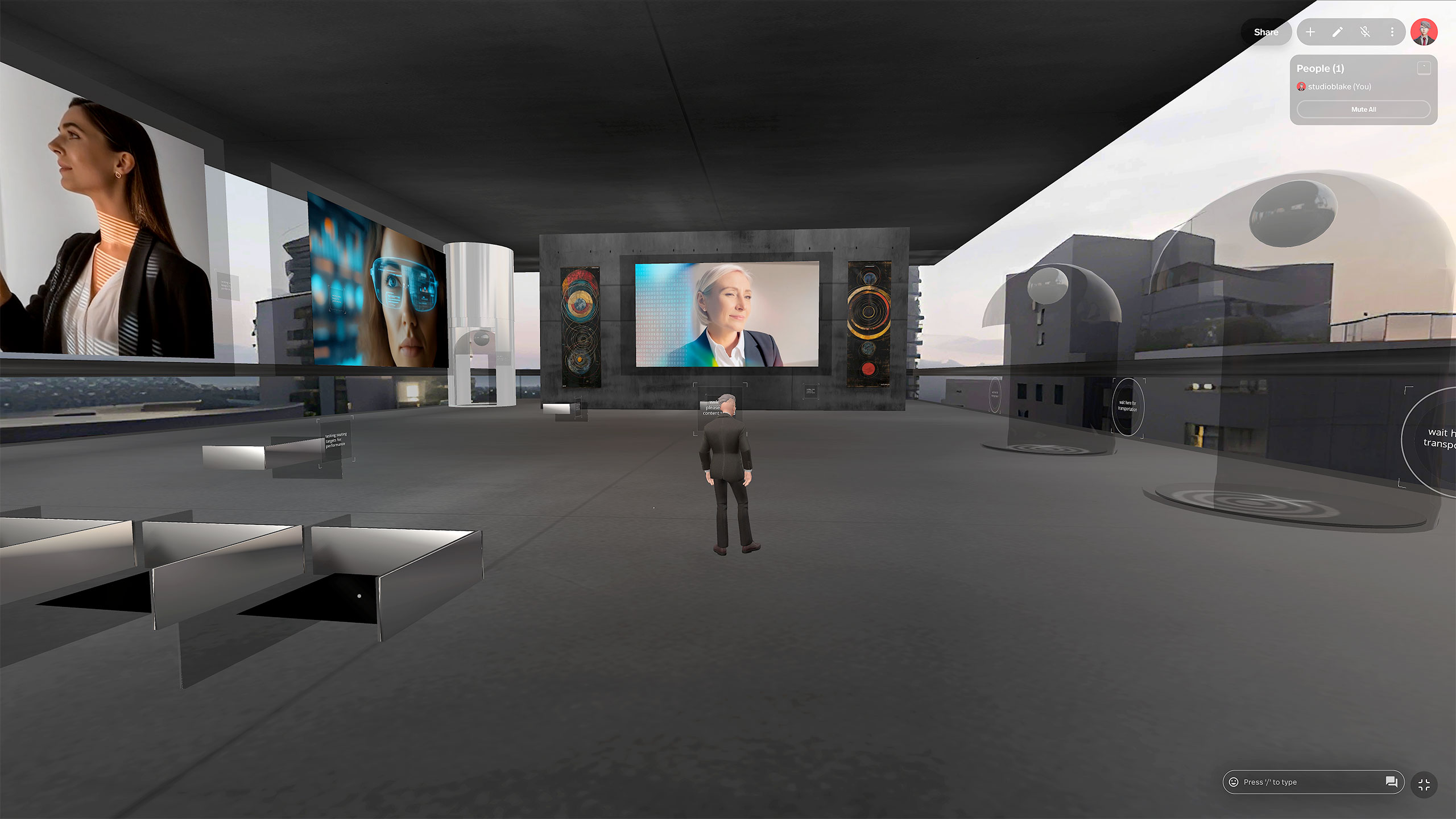 This project is a completed, ready-to-deploy immersive architectural experience in the metaverse. Users can explore the built virtual environment in real time, review key design elements, and navigate the space as a shared experience. The environment supports embedded and user-added content—video, images, audio, PDFs, and 3D models—to provide context and bring the design narrative to life. Viewers can add and remove content in real time, with permissions controlling what each viewer is allowed to change. The experience supports collaboration and storytelling, helping teams and stakeholders align through interactive walkthroughs and guided content.